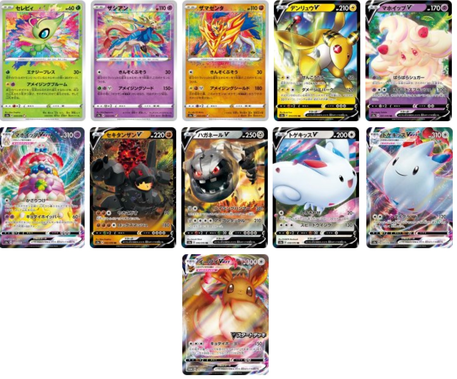 69 (54 normal, 15 secret) this set is an expansion set of the pokmon sun & moon saga. In s4a shiny star v, black & gold ur cards of zacian v, zamazenta v, eternatus v and eternatus vmax were introduced. These are cards that are part of the legendary heartbeat subset.